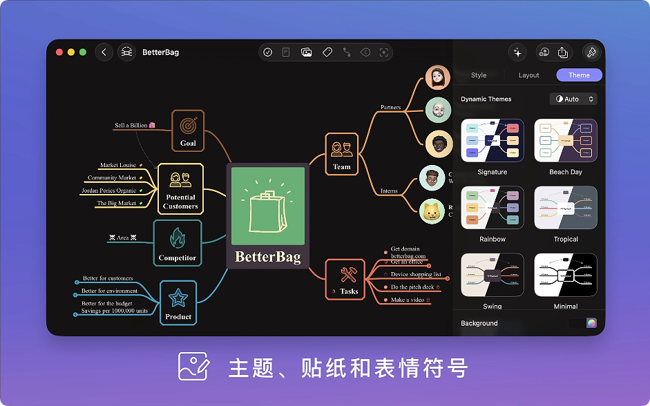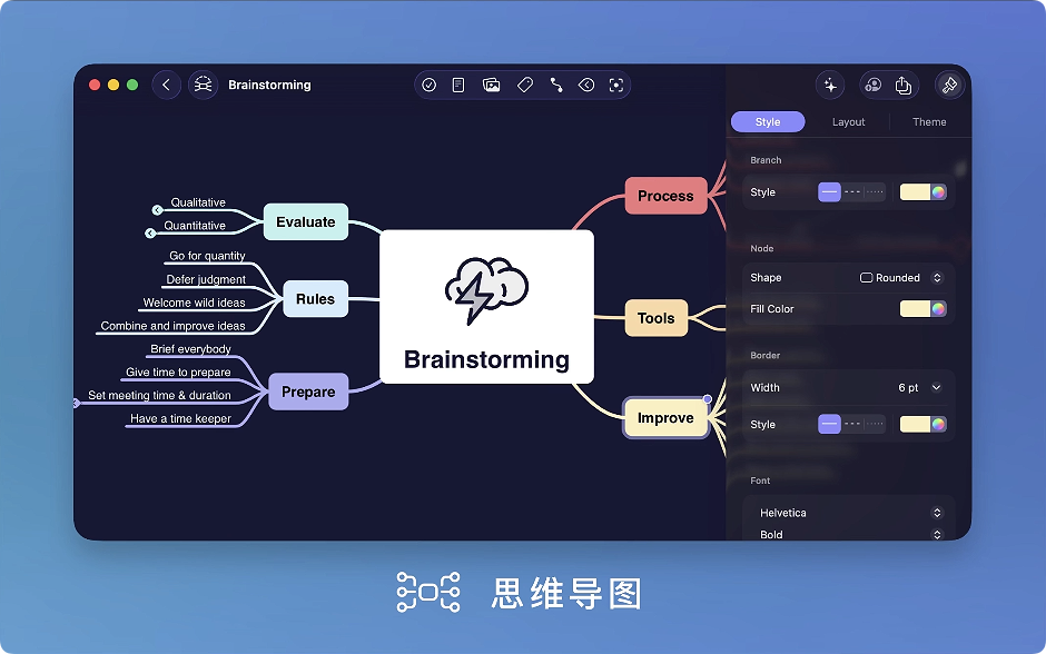 – 样式:丰富的样式选项,用于思维导图的每个部分