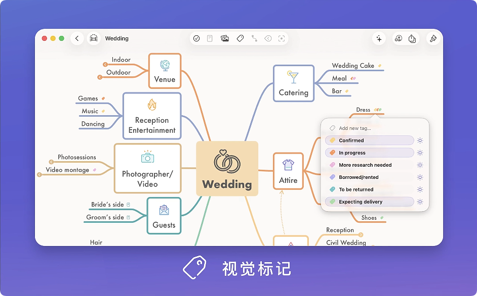 – 可视标记:标记您的想法增添更多背景,突出显示标记查看新关联