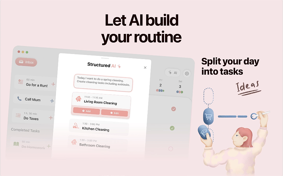 AI 功能增强:优化 Structured AI 的自然语言解析能力,使其更准确地将“明天上午写报告”这类语句转化为具体任务。