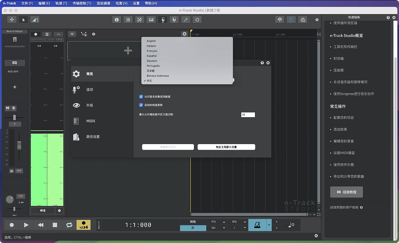 n-Track Studio Suite for Mac 是一款功能全面的音频与MIDI多轨录音软件,可将你的Mac变成功能齐全的录音室,支持无限音轨录制、高精度音频处理及专业混音功能,适用于音乐制作人、录音师和独立音乐人。